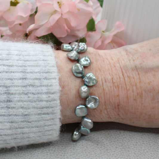 Silvery Green Keshi Pearl Bracelet - Verdant Whisper
