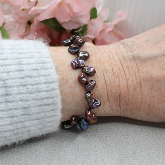 Purple Peacock Keshi Pearl Bracelet - Abyssal Glow