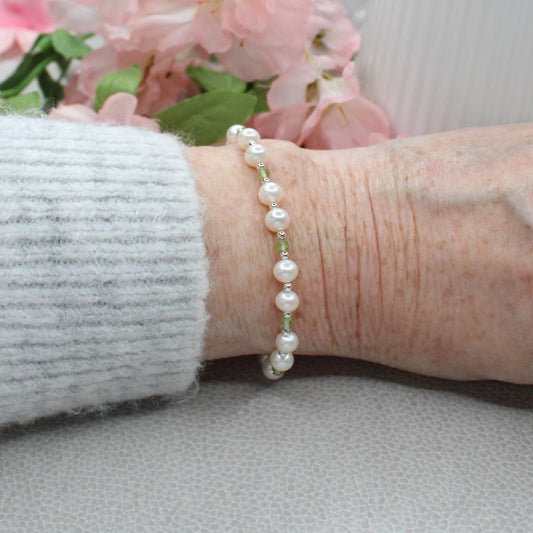 White Pearl & Peridot Bracelet - Spring Gleam