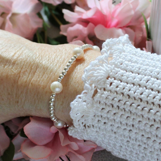 Pearl Sterling Silver Bead Stacking Bracelet - Moonlight Glow